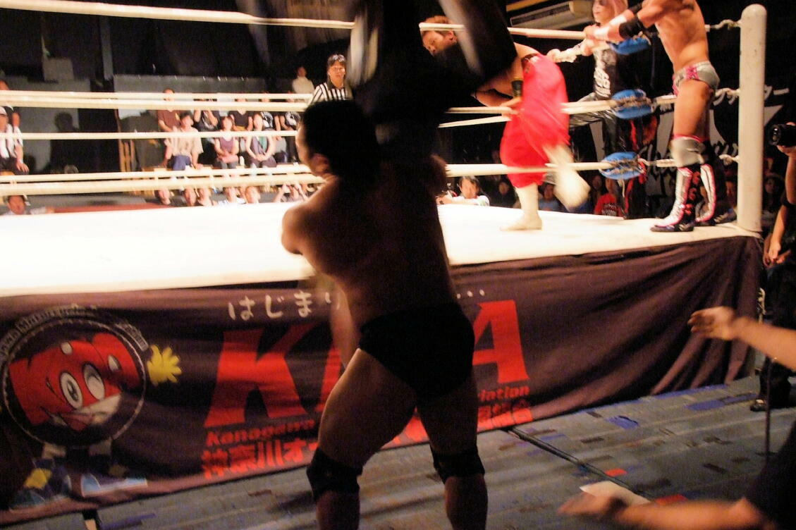 | 低空ドロップキックです!これももうちょっとアップじゃなくて引きの画像を撮ればよかったなあってかんじかな? |