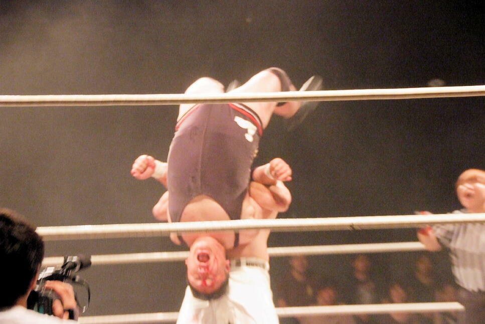 | 技が決まるかどうかっていつもドキドキしちまいますよね!まあブレーンバスターに見えますが、ちょいと違うんだよね! |